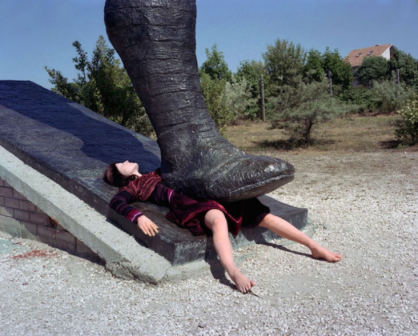 El diseñador británico Liana lang specializiruetsya surrealista de la fotografía, jugando con la afición y traer un nuevo significado. Su proyecto fotográfico "Monumental error" es complicidad con Soviético monumentos en los antiguos países socialistas. Actúa sobre el fondo de los héroes de antaño, la chica que desafía los estereotipos de pensamiento.