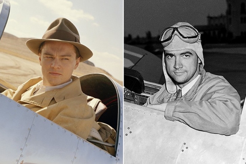 11. De izquierda a derecha: Leonardo DiCaprio como Howard Hughes en El aviador; Empresario estadounidense, ingeniero, pionero de la aviación Howard Hughes.