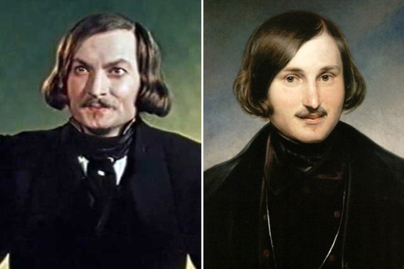 7. De izquierda a derecha: Georgy Vitsin como Nikolai Vasilievich Gogol en la película Composer Glinka; Escritor en prosa ruso, dramaturgo, poeta Nikolai Vasilyevich Gogol.