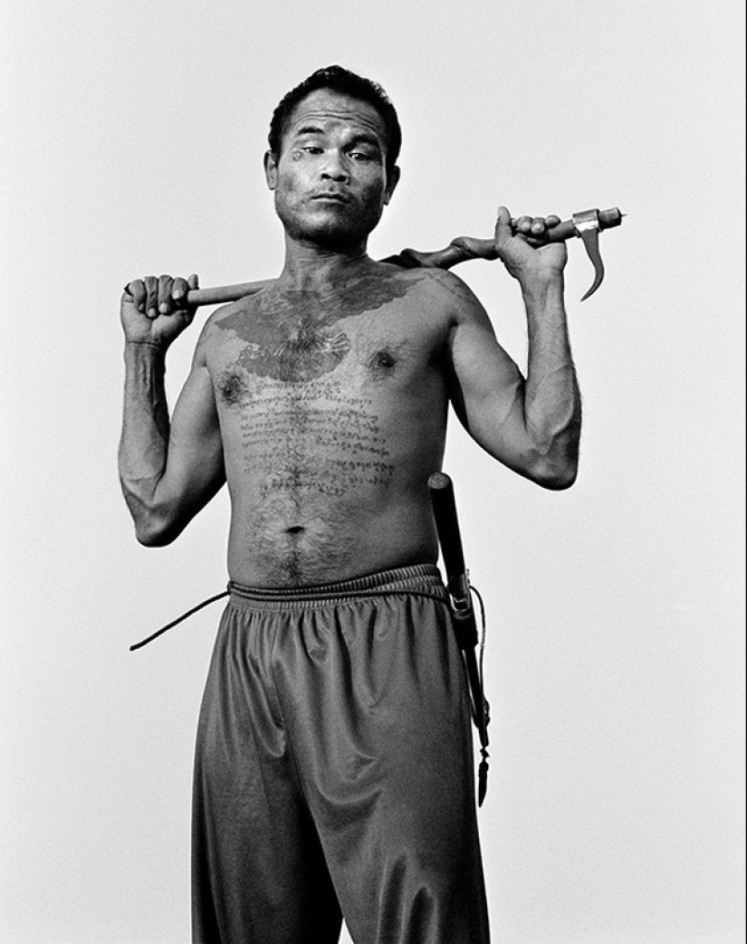 Una lágrima corre desde el ojo del elefante, que tres días permanecieron en un banco de madera en la frontera entre tailandia y birmania.