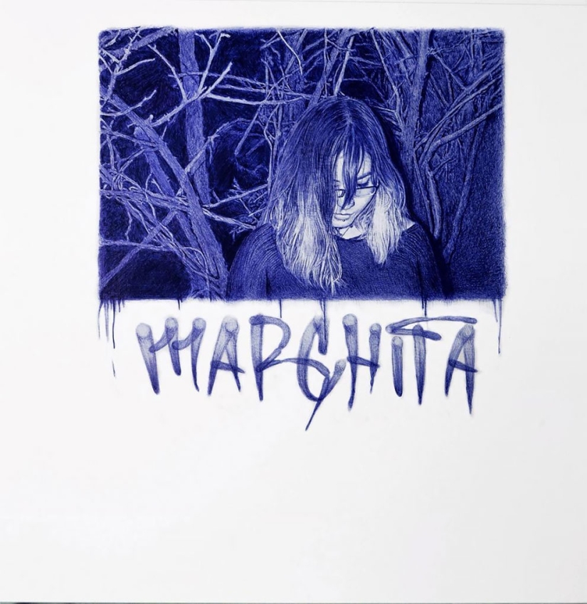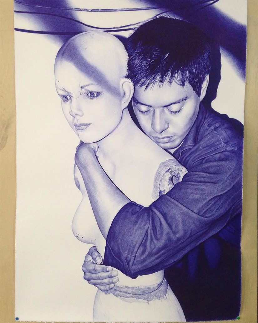 Por Pictolic https://www.pictolic.com/es/article/la-superioridad-del-azul-un-joven-escribe-imgenes-fascinantes-con-un-bolgrafo.htmlPara el artista mexicano Alfredo Chamal (Alfredo Chamal) aún no tiene 30 años, pero sus obras, hechas con un simple bolígrafo, están dispersas por galerías de arte como pan caliente. Su coste oscila entre 500 y 5000 euros.