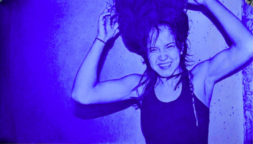 La superioridad del azul: un joven escribe imágenes fascinantes con un bolígrafo
