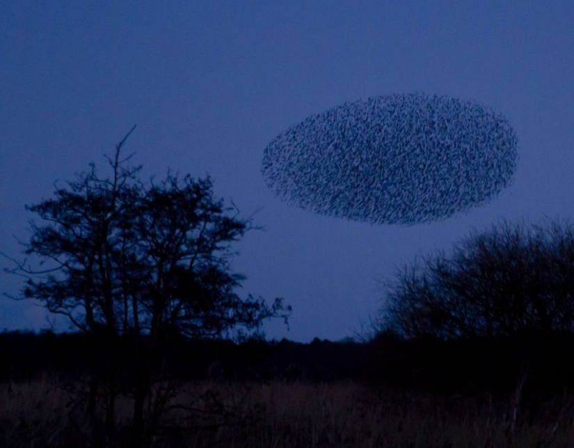 A 50 miles de estorninos se reúnen en el cielo en un gran canto rebaños. Este fenómeno se denomina también "una provocación."