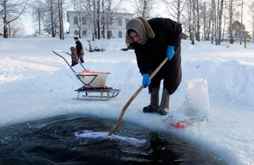 A principios del siglo XX, en el Territorio de Altai, había un impuesto sobre el lavado de ropa en un agujero de hielo-20 kopeks se cobraron por esto para el invierno. También tomaron 2 kopeks por cada viaje en el agua con un brazo oscilante.