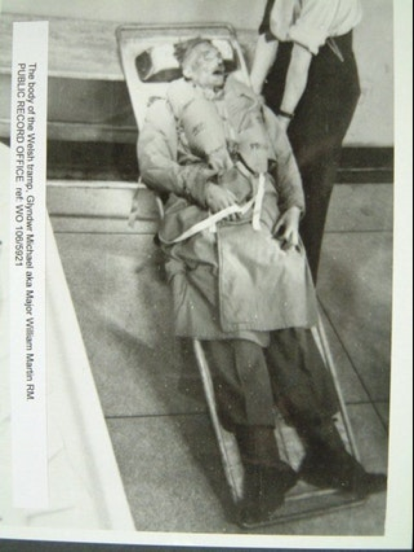 Lo más difícil fue poner zapatos en el cuerpo congelado y tomar una foto de su cara en la tarjeta de identificación. Como resultado, un oficial de inteligencia que se parecía a Glyndwr posó para la foto, y las piernas del cadáver se calentaron por la corriente eléctrica.