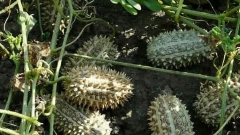 El pepino silvestre está cubierto de espinas fuertes que ayudan a la planta a protegerse de los animales y las aves. Hay muchas criaturas en la naturaleza que no son reacias a comer la pulpa jugosa de un pepino Hardwick, aunque tiene un sabor repugnante. Los criadores antiguos probablemente tuvieron mucho tiempo sobre el ancestro silvestre de la planta antes de deshacerse de su amargura. Al mismo tiempo, lo privaron de espinas, que son absolutamente inútiles en la casa.