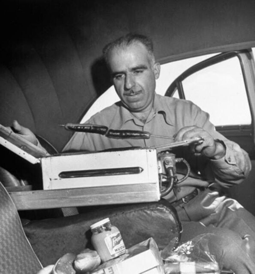 Una estufa en miniatura incorporada en la parte posterior del asiento trasero.