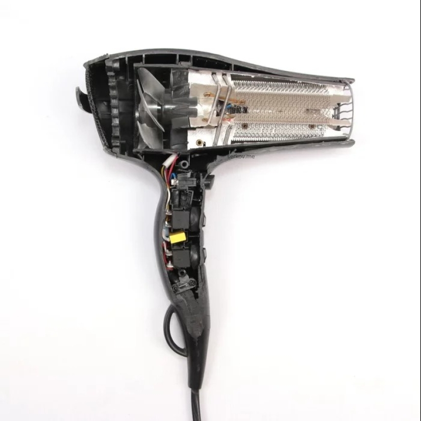 El secador de pelo se cortó por la mitad con un molinillo