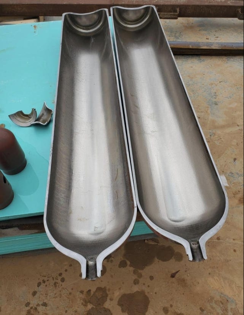 Un tanque de oxígeno cortado por la mitad