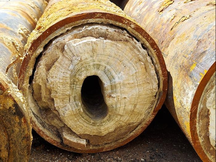 Con los años, dicha placa crece en la tubería de agua debido al agua dura