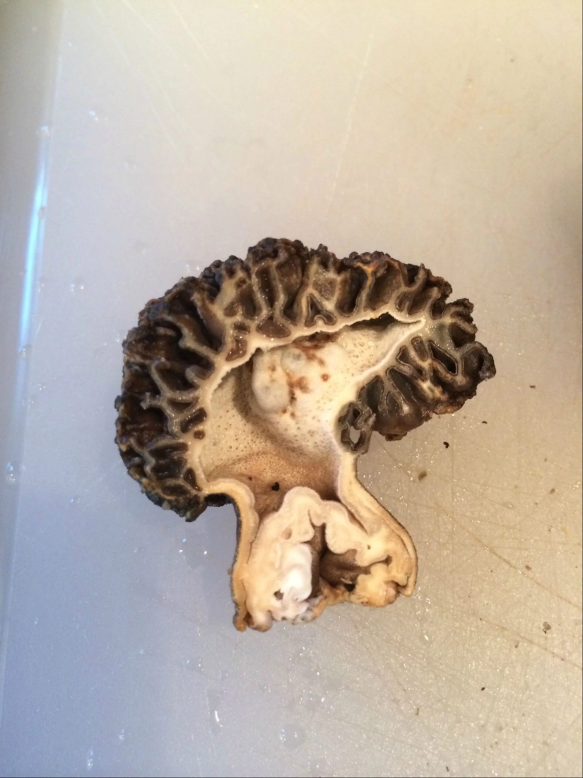 Esta colmenilla en la sección se asemeja a un cerebro