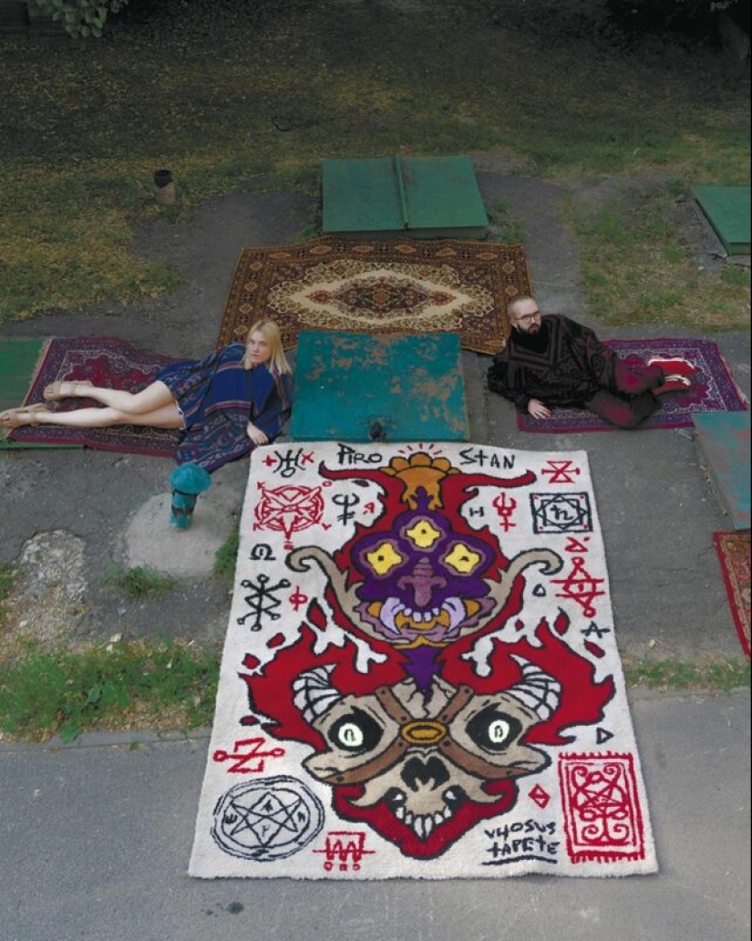 Después del lanzamiento del libro de arte, Yan y su esposa trataron de crear alfombras de autor por sí mismos y lo lograron! El artista, utilizando su amplia experiencia en el trabajo con adornos, dibuja bocetos, y su esposa los da vida. Resulta cosas muy hermosas y místicas, bastante diferente de los productos de alfombras soviéticos o modernos.